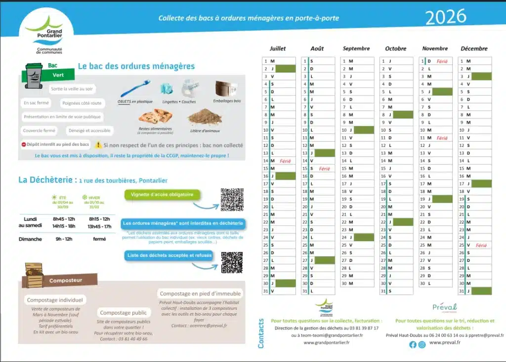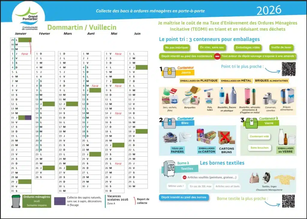 Le ramassage des poubelles est organisé tous les 15 jours le jeudi matin suivant le planning ci-dessous