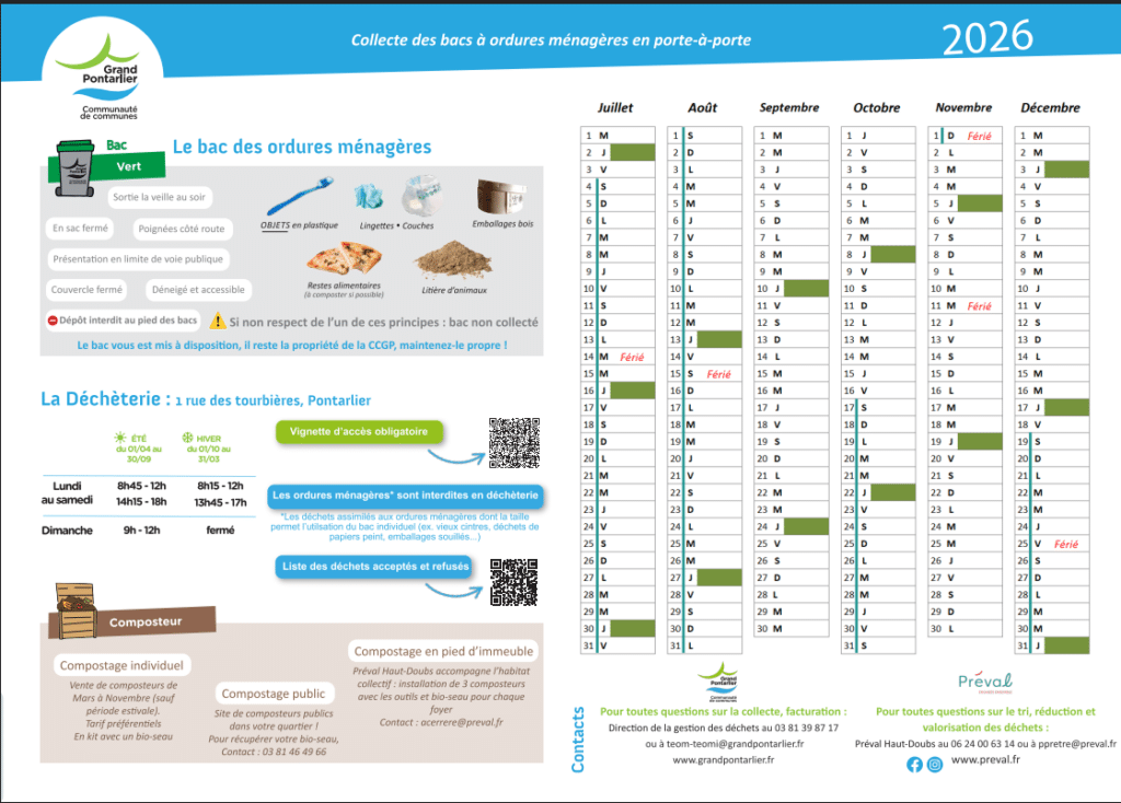 Calendrier ordures ménagères 2026